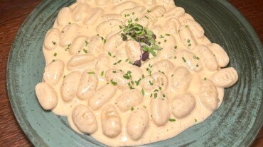 Gnocchi served in creamy cheese sauce